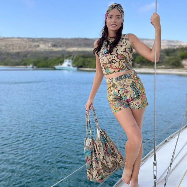 Devi Anggrainy shorts are made in Bali from a beautiful Indonesian fabric, batik. The shorts from Devi Anggrainy are available in the sizes S - M - L.
